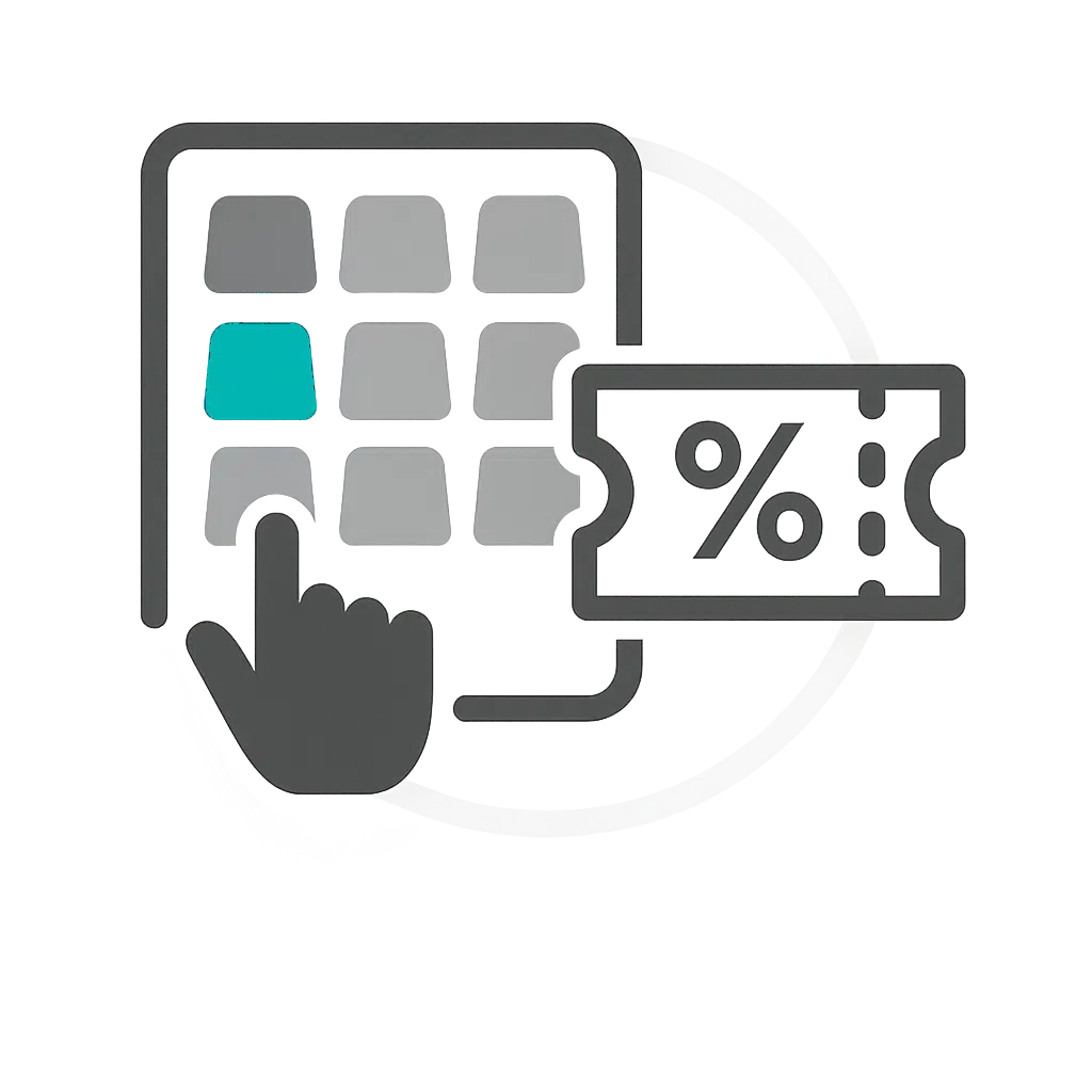 Visualiza el mapa del autobús, selecciona el lugar perfecto y, si tienes un cupón, aplícalo al instante.