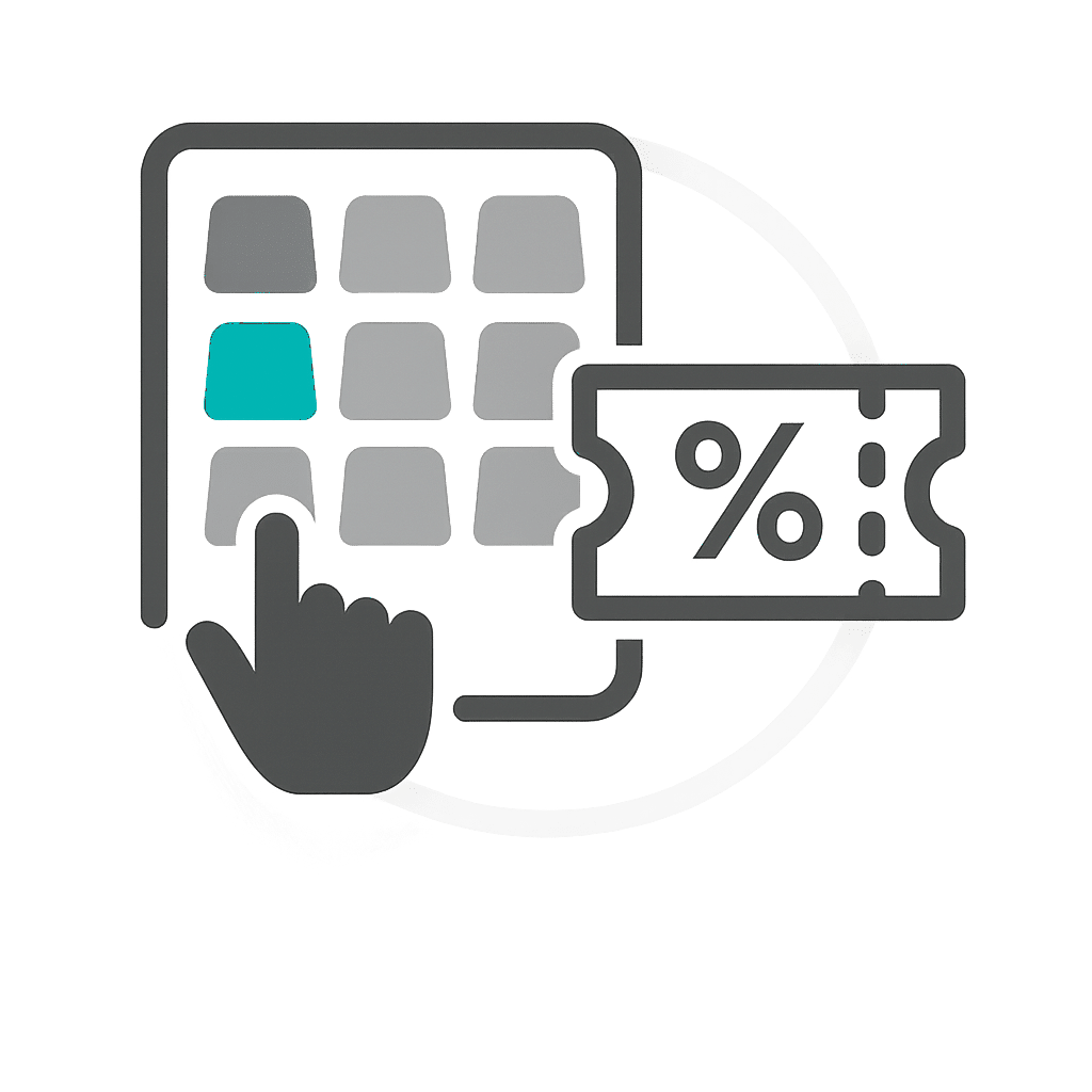 Visualiza el mapa del autobús, selecciona el lugar perfecto y, si tienes un cupón, aplícalo al instante.